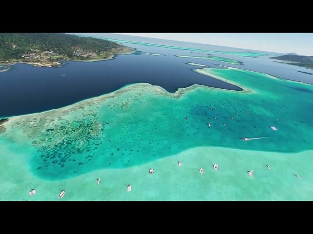 So you will see detailed Airports, Landmarks, groud photo replacing default when it's necessary, water mask, water removed on other (IMPORTANT : See more details on flyndrive4d web site), rework of all Vegetation on every islands, fauna, boats and every pontoons, animated people, fictitious helipad when atolls are distant, jet ski or traditional canoe...